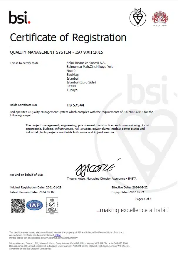 At ENKA, we recognize the importance of collaboration and value creation. We strive to foster strong partnerships with our employees, customers, business partners, suppliers, subcontractors, and all other stakeholders. Through this collective effort, we aim to deliver excellence in all aspects of our work, while upholding our mission of caring for people. The dedication and support provided to our employees have enabled us to integrate quality across all our areas of operation.