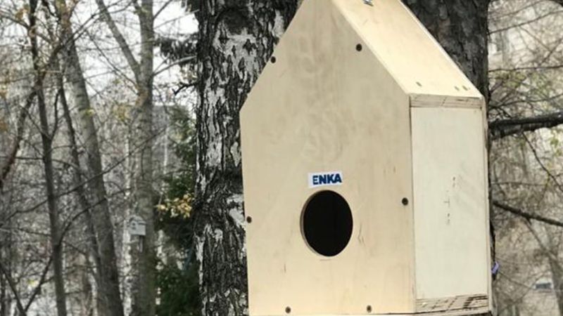 Сотрудники проекта компании «ЭНКА», Бизнес центра «ТАИФ» в Казани, Татарстан/Россия совместно с детьми построили 11 птичьих домиков и поместили во дворах детского сада Аленький цветочек и лицея № 159.