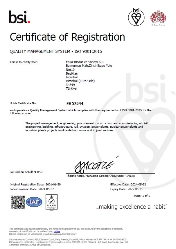 Stratejik hedeflerimizin gerçekleşmesini sağlamak, ürün ve hizmetlerimizin kalitesini korumak ve çalışma verimliliğini artırmak amacıyla ENKA’da titiz ve sürekli geliştirilen kalite yönetimi sistemini uygulamaktayız. Bu sistem tüm süreçlerimizi etkili biçimde gerçekleştirmemizi, beklenen sonuçlara ulaşmamızı ve uluslararası kalite standartlarına uymamızı sağlamaktadır. Bunların yanı sıra kalite yönetimi sistemi, çalışan eğitimi ve gelişiminin temelini oluşturmakta ve kıymetli müşterilerimizin, çalışanlarımızın ve paydaşlarımızın ihtiyaç ve beklentilerini karşılamaktadır.